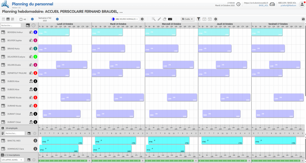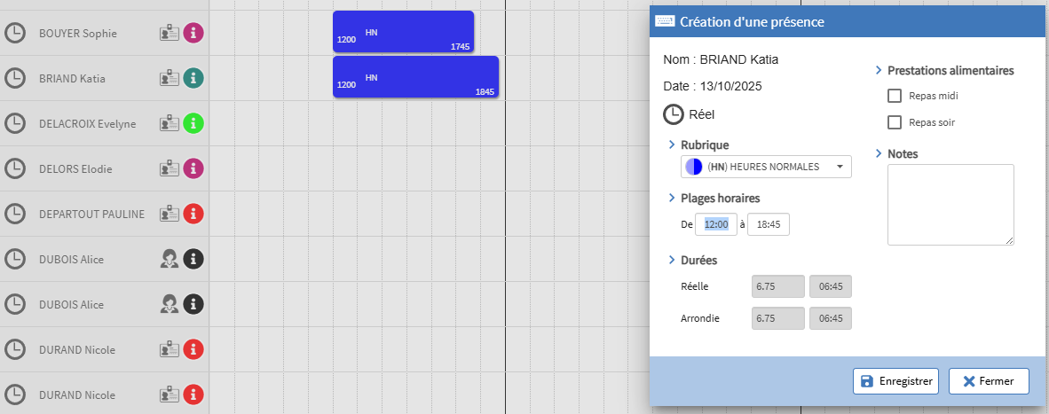 Cet outil sert à afficher les enfants et encadrant sur une même page de façon à contrôler le taux d’encadrement. Vous voyez en un instant les indicateurs clés (encadrants présents, nombre d’enfants, taux d’encadrement etc.)