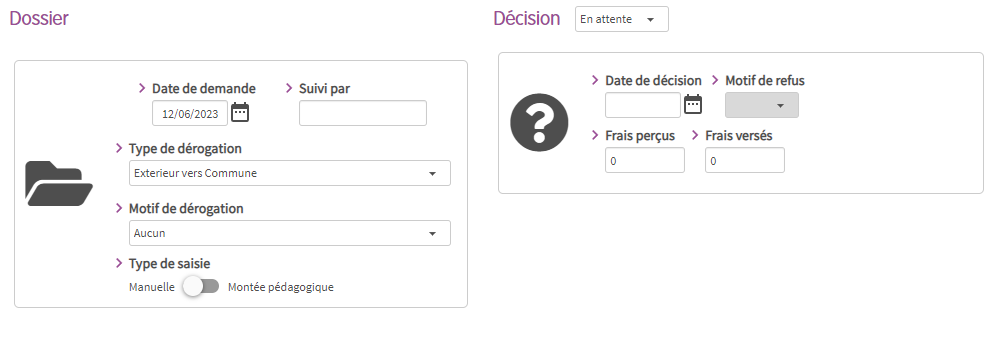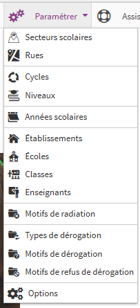 Elles permettent de placer l’élève dans une autre école que celle de son secteur. Les types et les motifs de dérogation sont paramétrables pour les dérogations entrantes et sortantes.