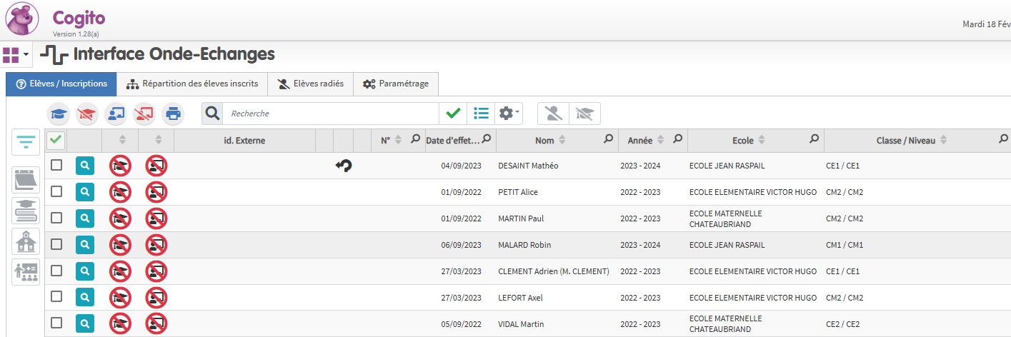 Domino/Cogito est connecté avec le système d’information de l’Éducation nationale. La synchronisation est bidirectionnelle et permet de récupérer la saisie faite par le chef d’établissement sur son logiciel. Le connecteur ONDE échange importe les inscriptions scolaires et peut mettre à jour les données des familles ainsi que la répartition par classe réelle. La montée pédagogique est ainsi facilitée.