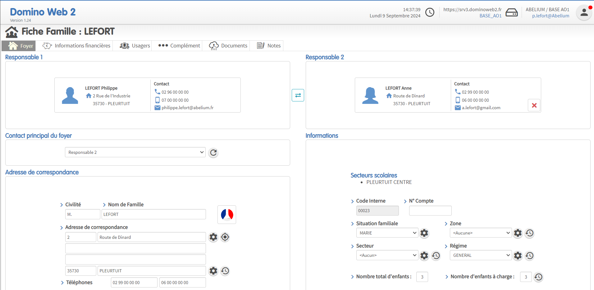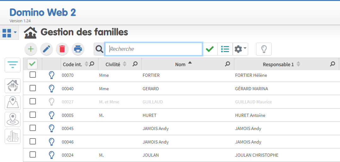 Suivez facilement l’évolution des familles avec la gestion des séparations et recompositions. Un enfant peut être rattaché à deux familles: celle de la mère et celle du père. La garde alternée est ainsi bien gérée dans Dominoweb.