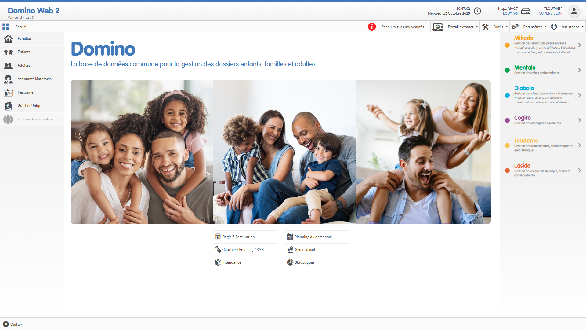 Un enfant créé dans le logiciel DOMINO peut être inscrit, sans aucune ressaisie, dans les différents types de structures : crèches, halte-garderies, centres de loisirs, écoles maternelles, etc.