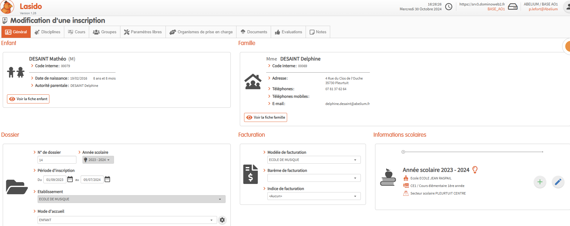 Le dossier d’inscription est central dans ce module et il permet de suivre l’enfant de A à Z (jusqu’aux examens/évaluations)