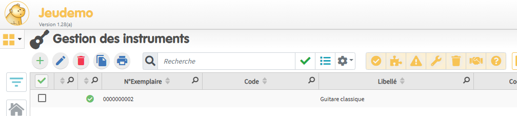 Chaque instrument à une fiche descriptive (âge, état, prix d’achat, marque etc.) et un suivi des prêts passés et en cours.